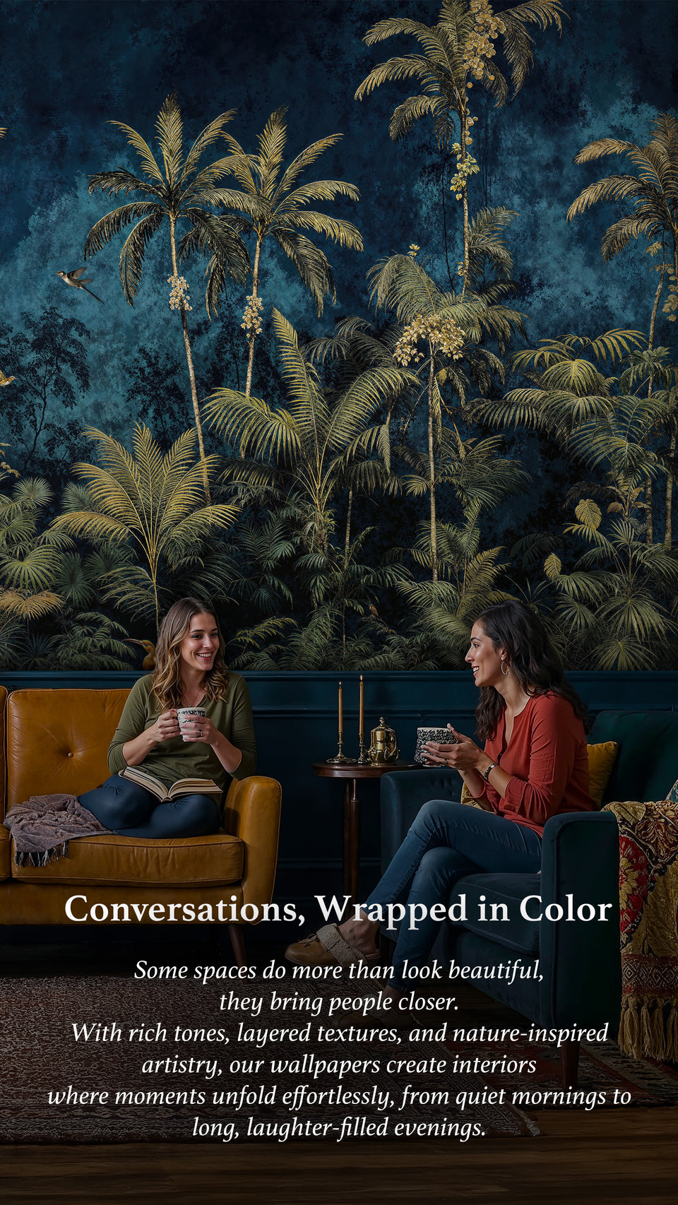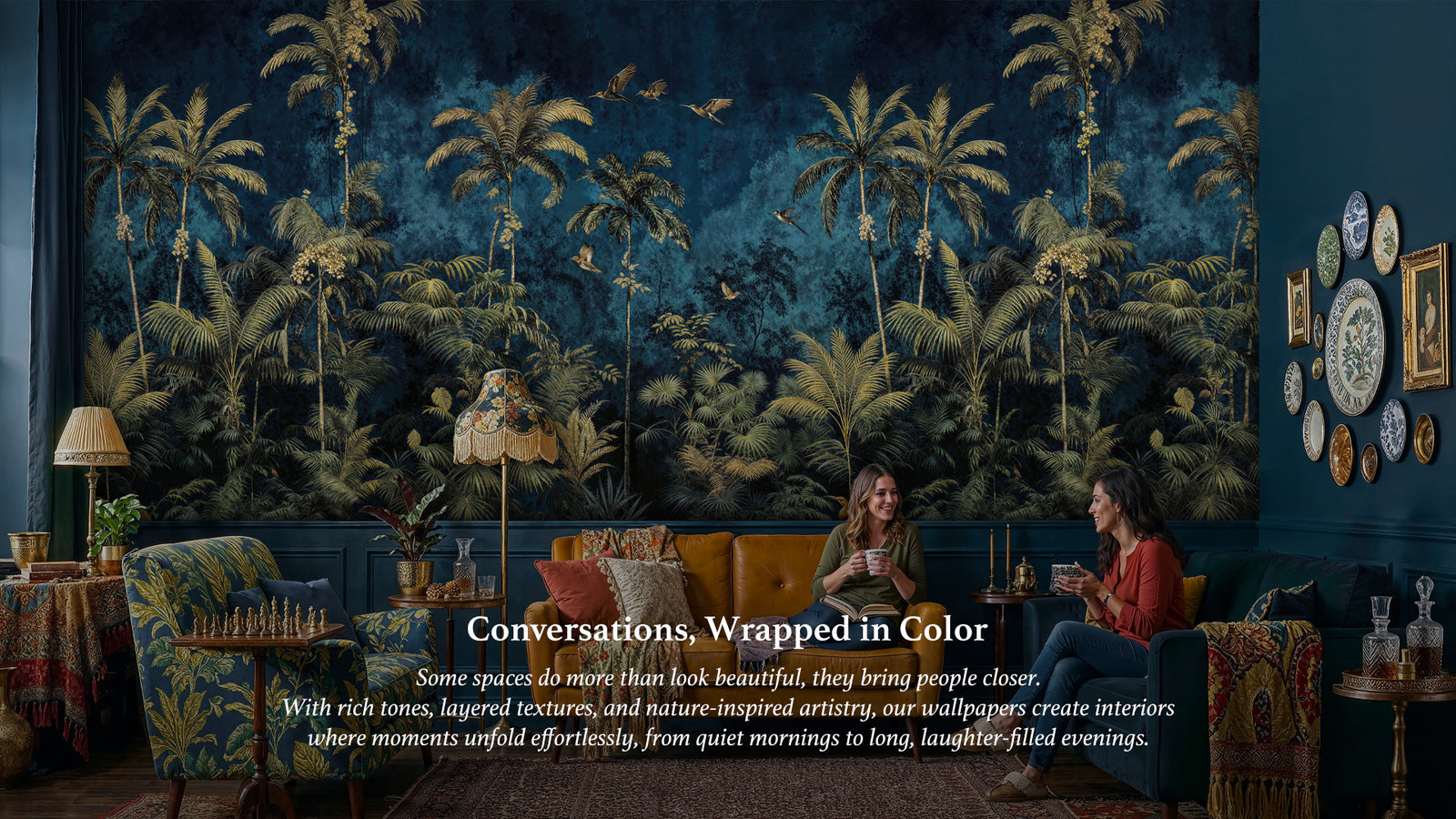 Discover our most enchanting wallpaper stories, each room styled with layered artistry, showcasing timeless prints in one immersive view.