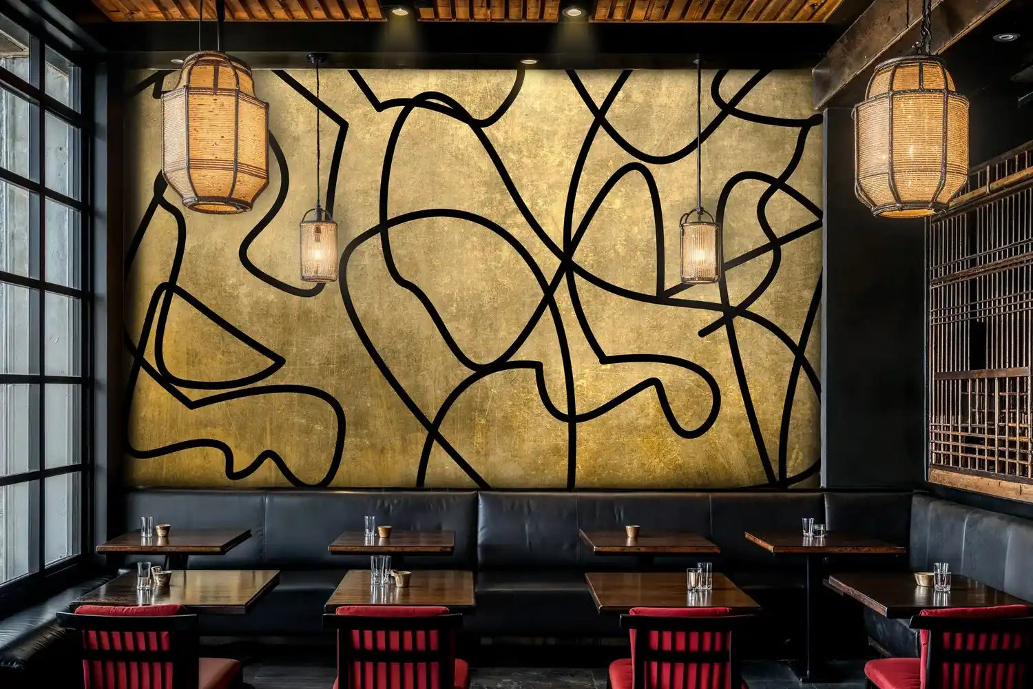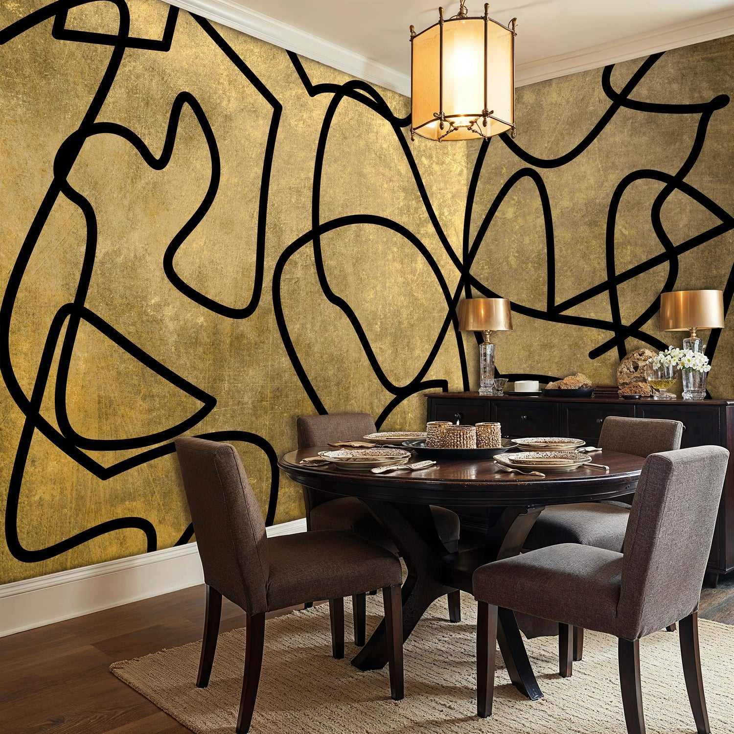 Whether adorning a living room, dining area, or office space, this wall mural complements modern interior design trends. The sophisticated color palette of black and gold works beautifully with neutral furnishings, metallic accents, and both minimalist and maximalist decor approaches.