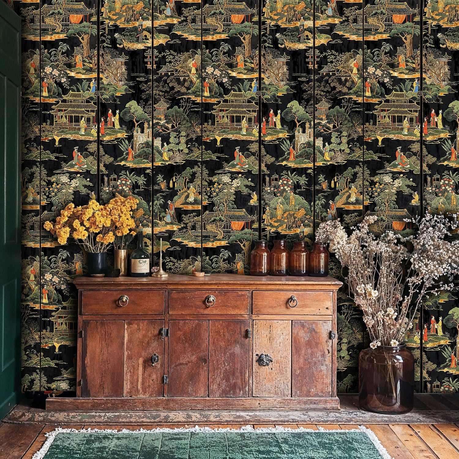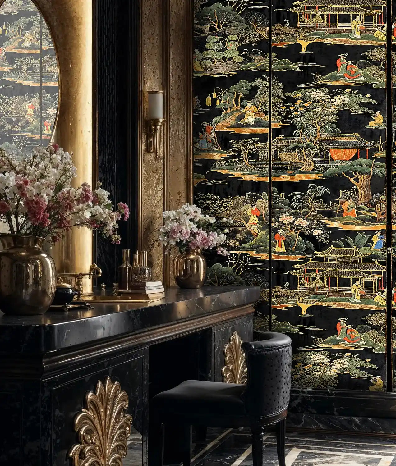 Step into a world where time stands still and tranquility reigns supreme. This exquisite Wallpaper captures the poetic beauty of traditional Chinese garden scenes, featuring graceful figures in flowing robes wandering through mystical landscapes adorned with blooming trees, ornate pavilions, and serene water features. Inspired by classical oriental art forms, this design by Atelier Merien brings the meditative atmosphere of ancient gardens directly into your home, creating a sanctuary of peace and sophisticated beauty.
