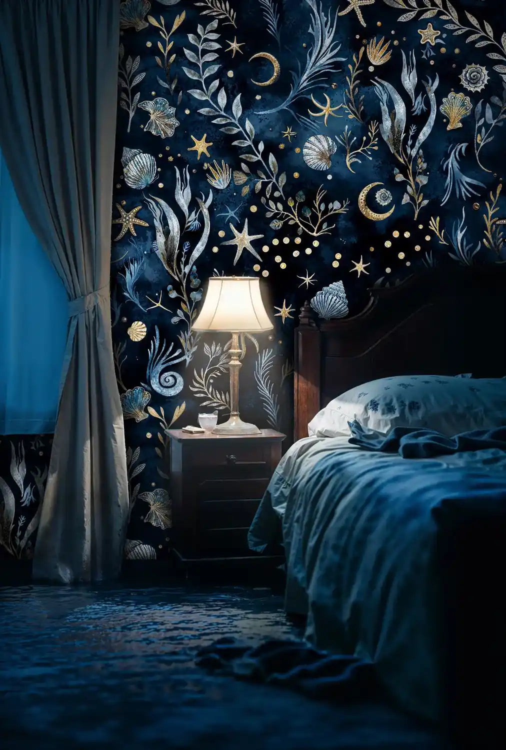 • Immersive Depth: Rich navy tones and subtle gradients add dimension, making rooms feel cocooned and serene.