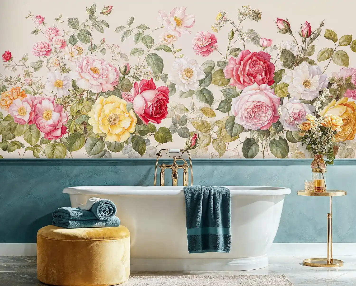 Step into an enchanted garden where soft roses dance with delicate peonies and wild blossoms cascade across your walls. This exquisite Wall Mural captures the timeless beauty of a romantic English garden in full bloom, bringing nature's most cherished flowers into your home. Created by Atelier Merien with meticulous attention to botanical detail, each petal and leaf tells a story of natural elegance and artistic mastery. The gentle watercolor technique creates depth and movement, making your walls come alive with the poetry of nature.
